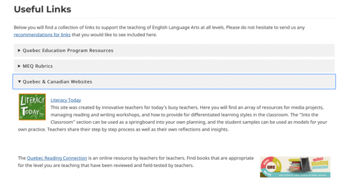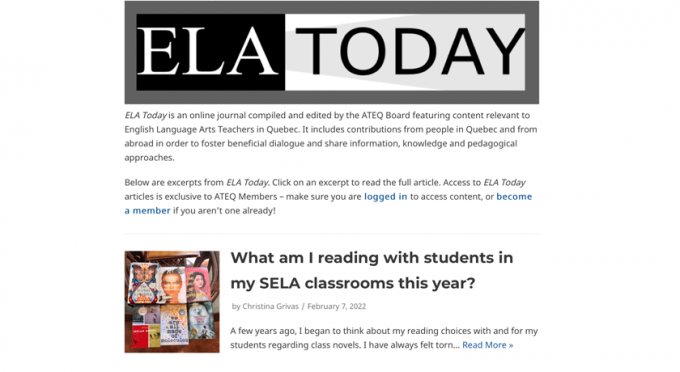 The Association of Teachers of English of Quebec (ATEQ) is a group of volunteer educators committed to fostering excellence and innovation in the teaching of English Language Arts in Quebec. The group offers their members opportunities for professional development, as well as access to a variety of pedagogical resources through their website, grants for site-based ELA projects, recognition awards, and an online professional journal.